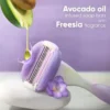 آلة الحلاقة النسائية Venus ComfortGlide تمنحكِ حلاقة ناعمة ومريحة بفضل تصميمها المزود بـ شرائط جل مدمجة مع عطر الشاي الأبيض. هذه الشرائط تُكوّن رغوة خفيفة عند ملامسة الماء، ما يغنيكِ عن استخدام جل الحلاقة المنفصل، ويجعل التجربة أكثر سهولة وسلاسة.
