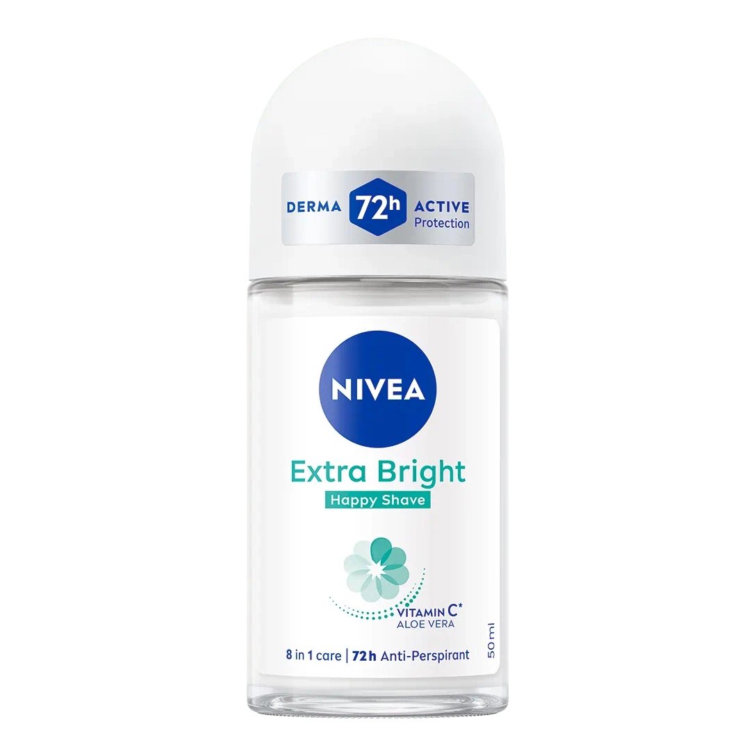 NIVEA Extra Bright Happy Shave 72H هو مزيل عرق رول أون مصمم لتوفير حماية فائقة من التعرق والرائحة لمدة تصل إلى 72 heures، مع عناية خاصة بالبشرة بعد الحلاقة.