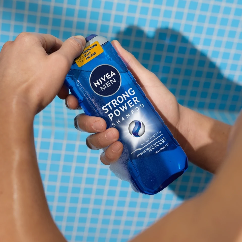 منتج NIVEA MEN STRONG POWER SHAMPOO 250ML من نيفيا هو شامبو يومي مصمم خصيصاً لاحتياجات الشعر الرجالي. تركيبته القوية تنظف فروة الرأس بعمق مع تقوية ألياف الشعر ومنحها طاقة ومقاومة ضد الكسر اليومي. يترك الشعر نظيفاً ومنتعشاً لساعات مع رائحة رجولية مميزة. مناسب للاستعمال اليومي لجميع أنواع الشعر الرجالي العادي.