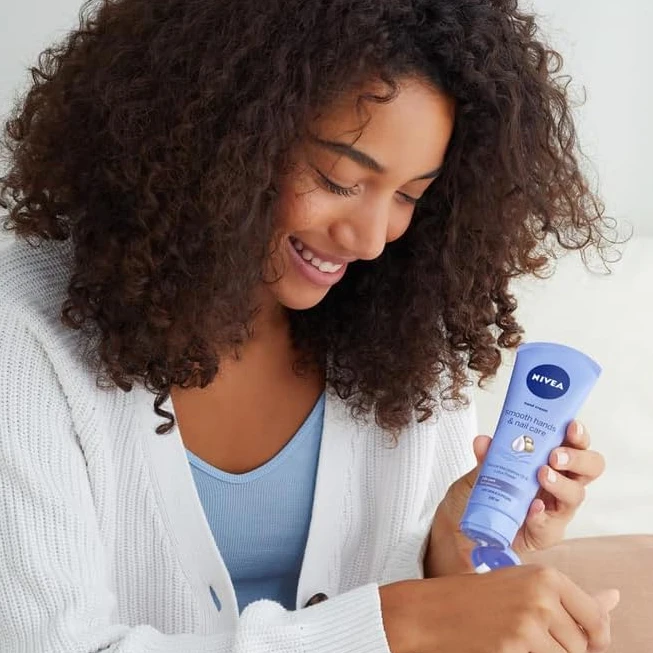 منتج NIVEA SMOOTH HANDS & NAIL CARE HAND CREAM 100ML من نيفيا هو كريم يدين وأظافر مزدوج المفعول ينعّم اليدين ويقوي الأظافر في آن واحد. تركيبته المرطبة بزيت اللوز وفيتامين E تعيد للجلد نعومته ومرونته، مع حماية الأظافر من الهشاشة والكسر. يُمتص بسرعة دون أثر دهني ويترك اليدين ناعمة وعطرة. مثالي للعناية اليومية لليدين والأظافر.